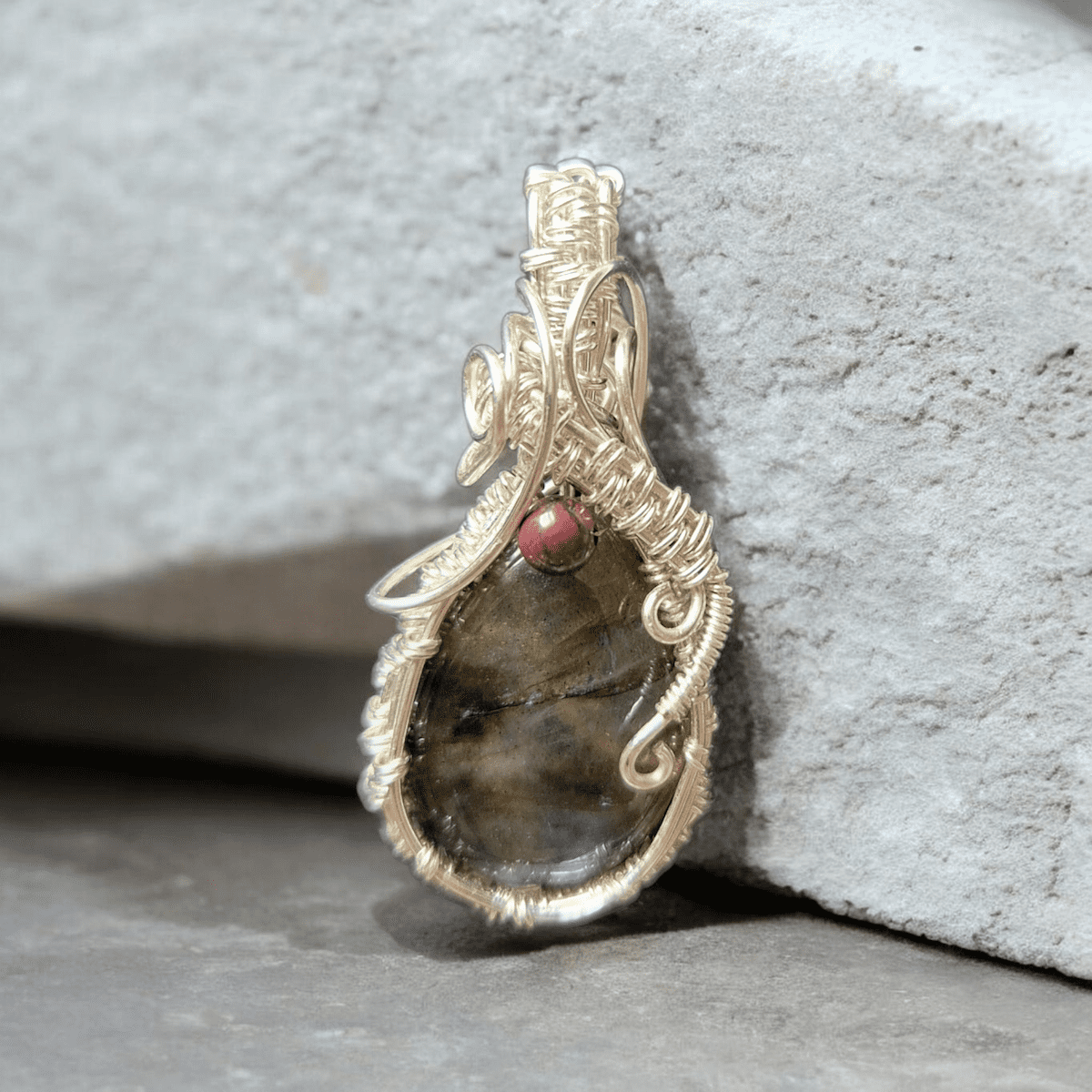 Stones: Flashy Labradorite and a small Aqua Jasper accent.